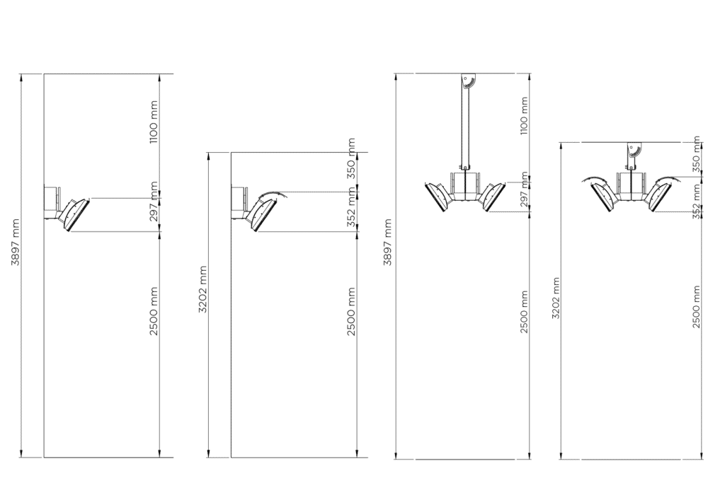 Tous nos radiateurs au gaz Smart-Heat sont livrés avec des supports de montage mural. Des poteaux de plafond, des déflecteurs et des contrôleurs peuvent être achetés comme accessoires supplémentaires.
