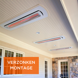 Ja. De verwarming wordt geleverd met twee beugels die kunnen worden gebruikt om de verwarming aan een muur of plafond te bevestigen. We bieden ook een inbouwset voor een meer verzonken esthetiek.