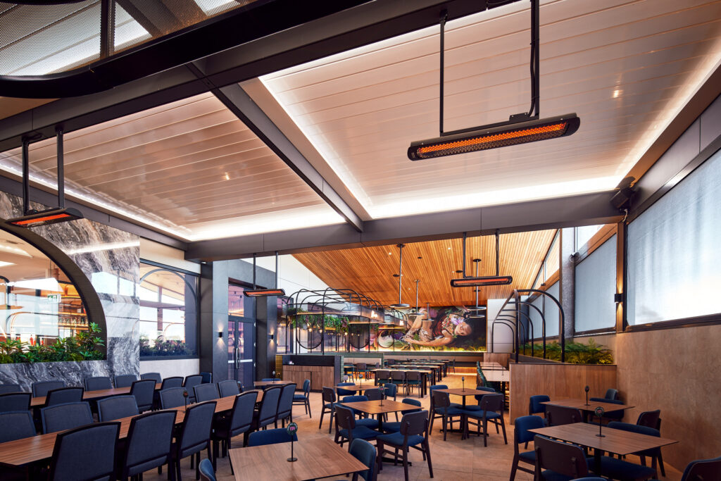 Elektrische buitenverwarmer plafond gemonteerd in café